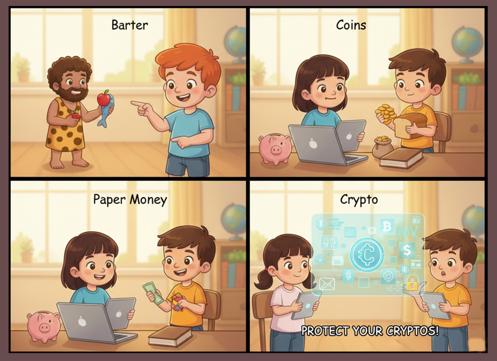 Join Bit-Buddy, the clever golden coin in a fedora, as he guides young readers through the exciting world of digital money. In this fun, story-driven book, kids discover how money evolved from trading apples and fish to becoming secure, digital, and global.